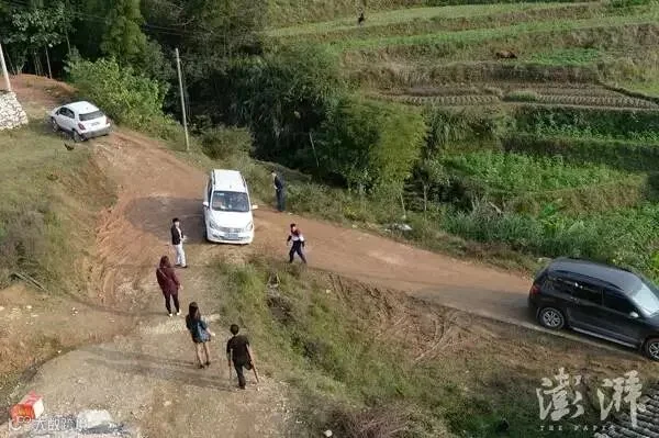 停在范家发家附近的车子把路都压坏了,“小马云”走红之后每天都有很多人开车专程来看他