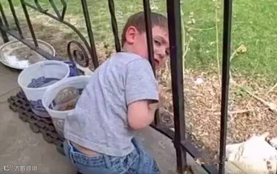 话说国外有一个叫乔伊的小男孩,就把自己的头卡进了铁栏里。