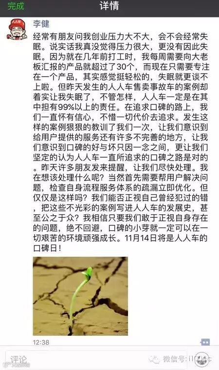 【附】人人车关于11月14日用户投诉事件的说明: