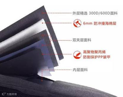 蒙马特背包的外层精选 600D 面料、6mm 防冲撞海绵层、高聚物聚丙烯(俗称百折胶,就是乐扣乐扣的盖子用料)防割保护 PP 装甲等,让你放心地在小偷面前晃悠。
