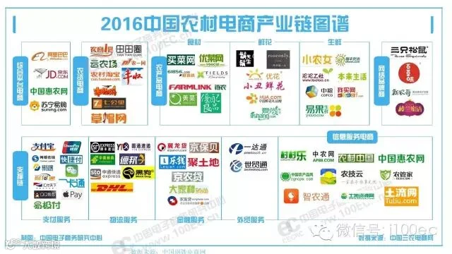 据中国三农电商网(www.100ec.cn/zt/sndsh)企业数据库监测显示,农村市场成为电商战略发展的新重地。目前农村电商市场包括:1)平台电商:阿里、京东、苏宁等;2)品牌电商:三只松鼠、百草味、新农哥、褚橙、獐子岛、胡须先生等;3)B2B电商:云农场、农商1号、生意宝、一亩田、链农等;4)O2O电商:小农女、美菜、优配良品、田田圈等。
