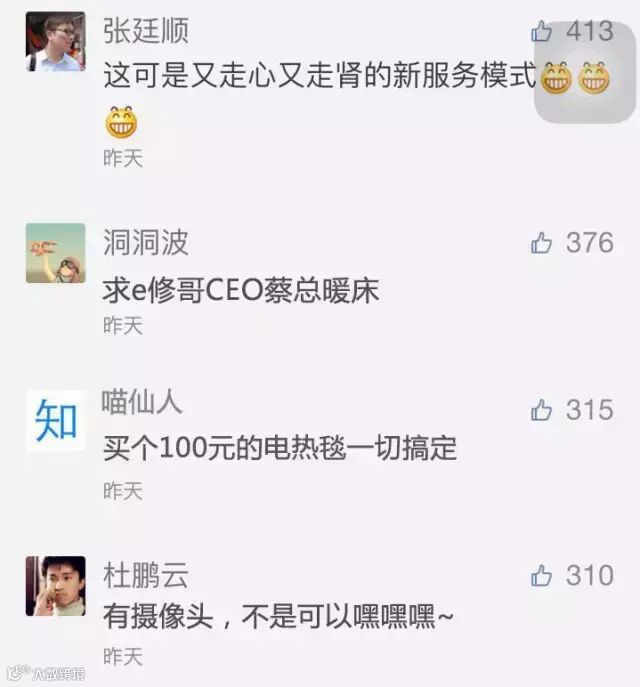 上门暖床自2016年10月上线,一直不温不火。但因近期寒潮侵入南方,连多年暖冬的上海都飘起大雪,所以最近半个月狂增用户300万,上海零下7度的那一夜新增下载注册50万。目前已宣布获得苏润资本2000万A轮融资,估值超过3亿美金!