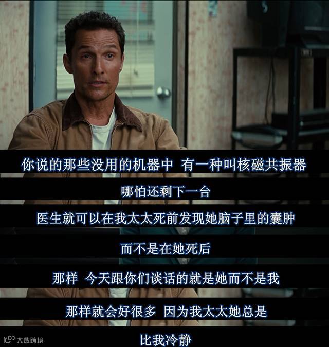 男主反驳说:就是这种扯蛋计划中发明的MRI(核磁共振仪),可以救我妻子的命。