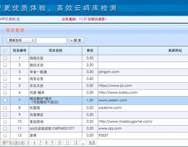 软件平台的后台上,可看到各个项目的收费标准,注册一个新的微信号,只需要2.2元。