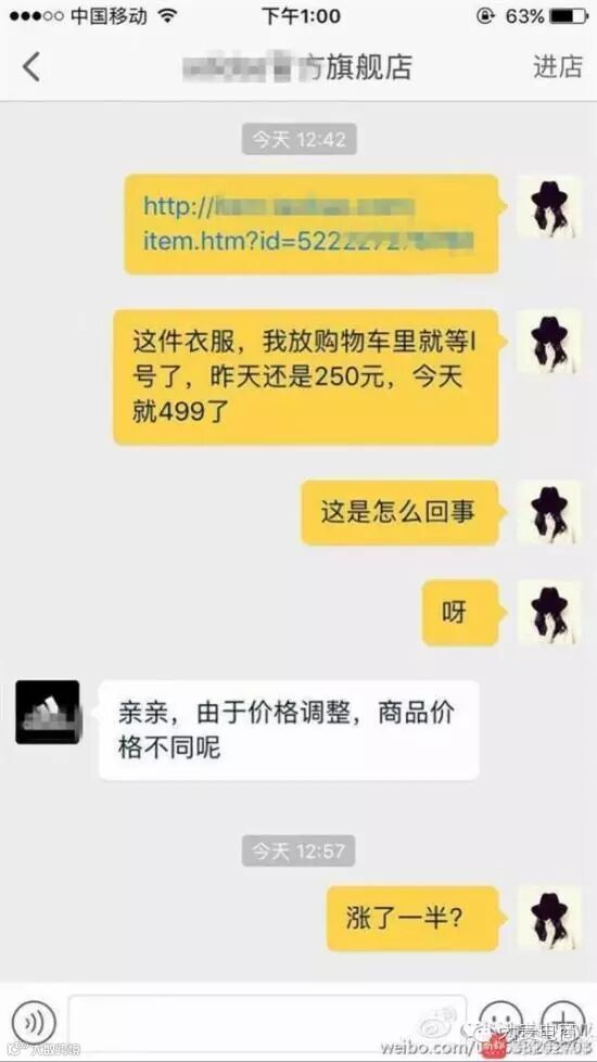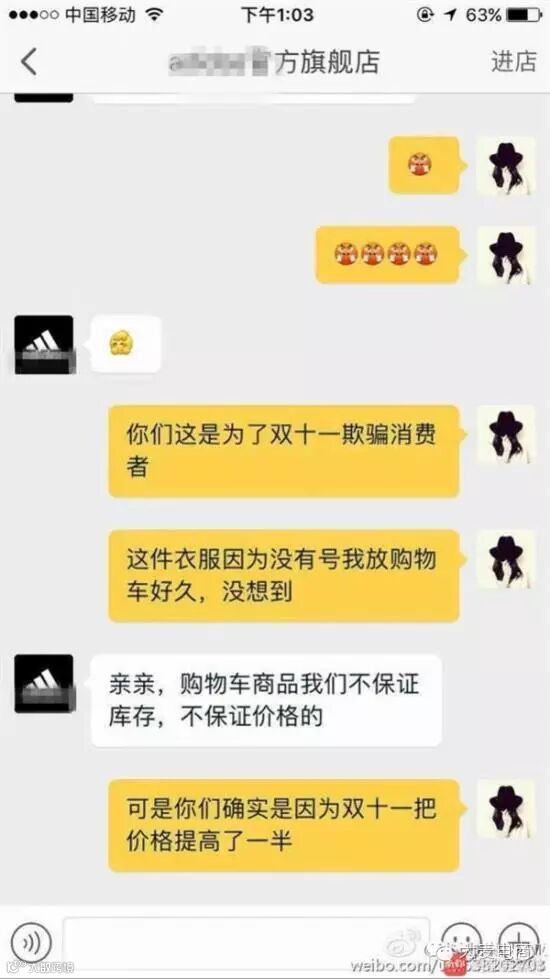 他随后联系到了该店客服,询问为什么仅仅相隔一天价格就突然上升,质疑商家是“为了双十一欺骗消费者”。
