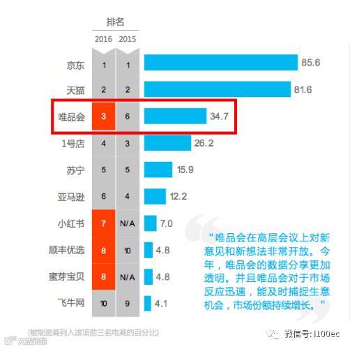 未来三年内“最具影响力电商”排名唯品会位居第三位