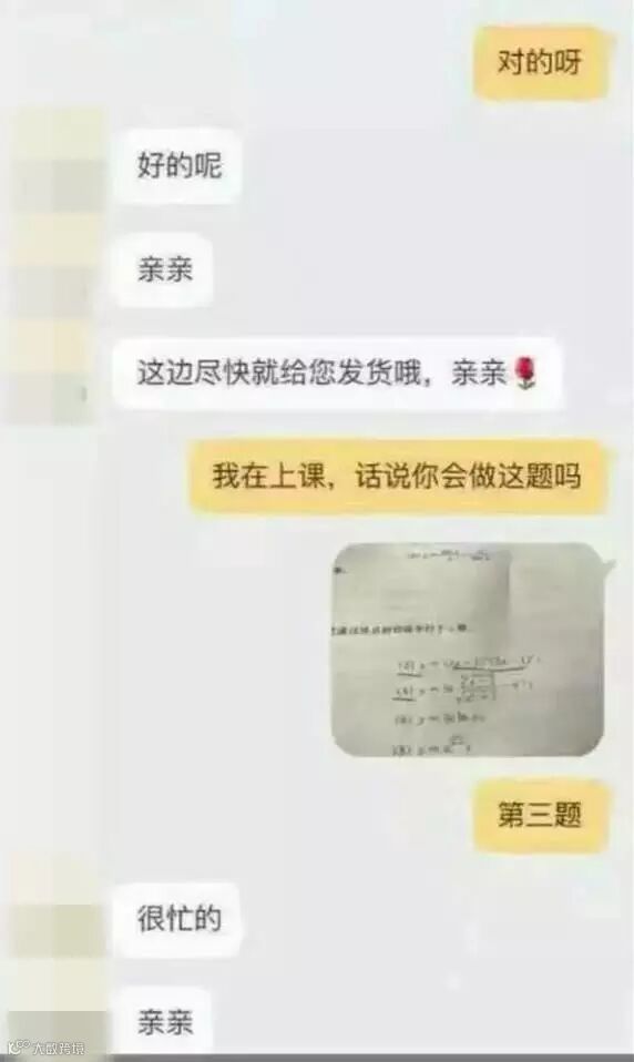 导读:最近,一个霸气侧漏的淘宝客服火了!起因是一个网友在上课的时候逛淘宝,还抓住一个客服问数学题。哈哈,让我再笑会......