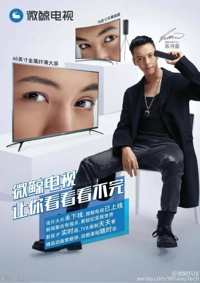 刚刚进入11月份,微鲸就搞了个大动作,找了当红人气男星陈伟霆当代言人。找陈伟霆当代言人,正是为了突出自身的品牌形象,随着今年《老九门》等电视剧的热播,可以说陈伟霆的时尚、帅气、潮酷这一形象圈了不少粉丝,这与微鲸产品的定位吻合度很高。