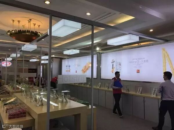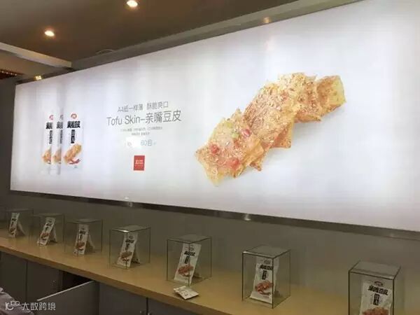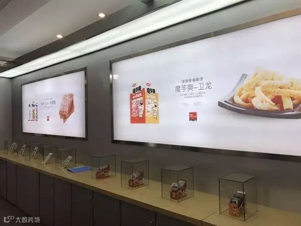 照片中,一包包不同口味的辣条被当做展品陈列在玻璃展示柜内。从装修风格到商品陈列方式,大有苹果旗舰店之风。有网友称,卫龙已不再满足于被摆在超市的货架上,而是要自己开旗舰店。