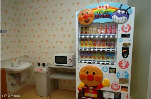 ↑婴儿室内的自动售货机,比照幼儿身体设计,就连饮料盒都比一般的小,适合孩子的小手拿握。