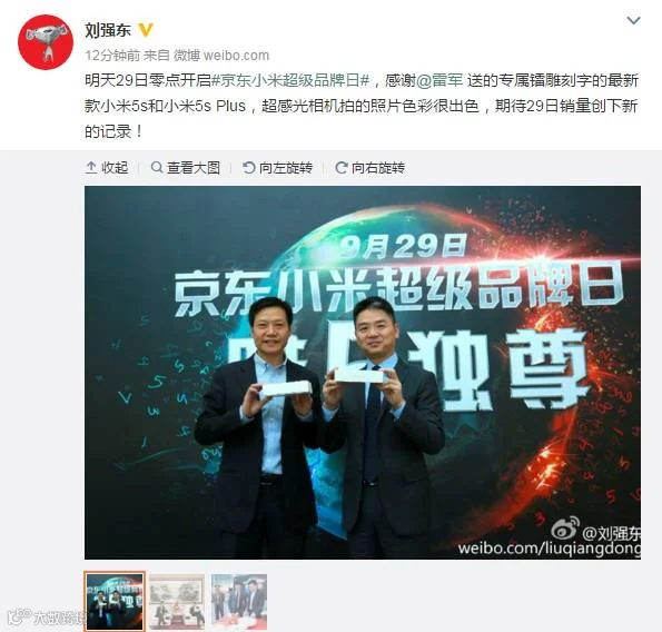 上市后刘强东首次微博发声 密会雷军要“搞大事”?