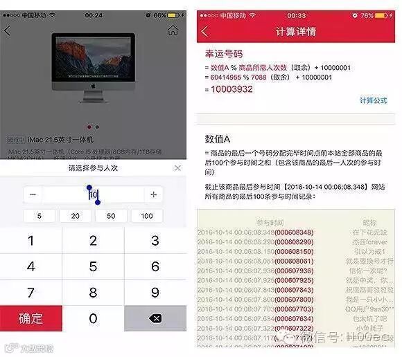一元购,简单来说,就是网站上所有商品都拆分成一元一份。一个号码可以购买多份,最后再由系统公布中奖号码。从正常逻辑上讲,一次性购买份数越多,抽中商品的几率就越大。钱一旦投出概不退还,用户会产生一种1块钱就能抢到iPhone 7、单反相机、金条等价值数千元商品的错觉。