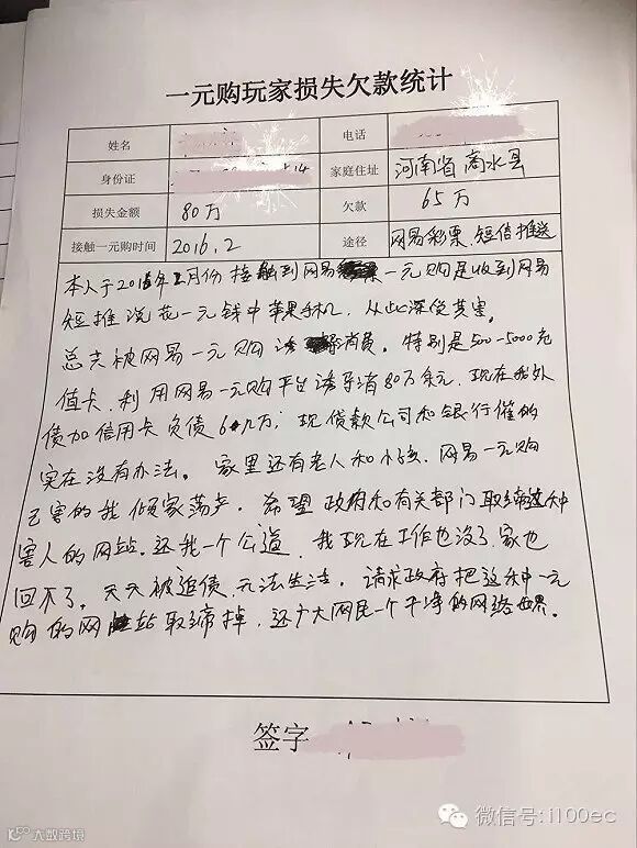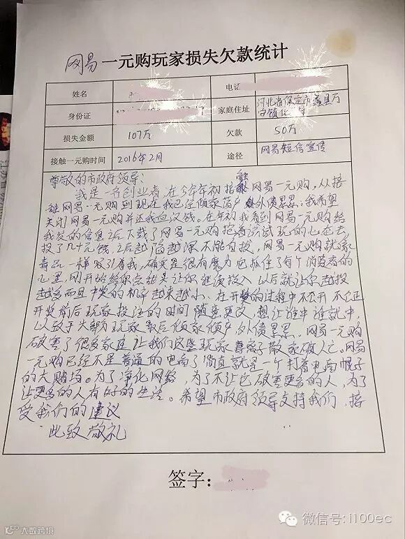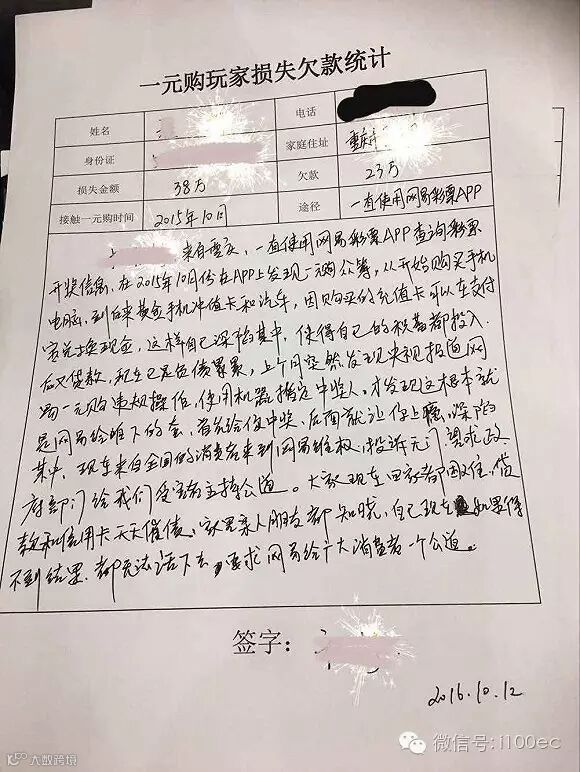 这些维权者分别来自河南、重庆、内蒙古、深圳等各地,都是网易“一元购”的受害者,损失金额从几万到几百万不等,总计超过3000万元。在接受界面新闻记者采访时,许多人都将这种一次一元的小诱惑形容为“像吸毒一样,每天一打开手机就想投一投”。