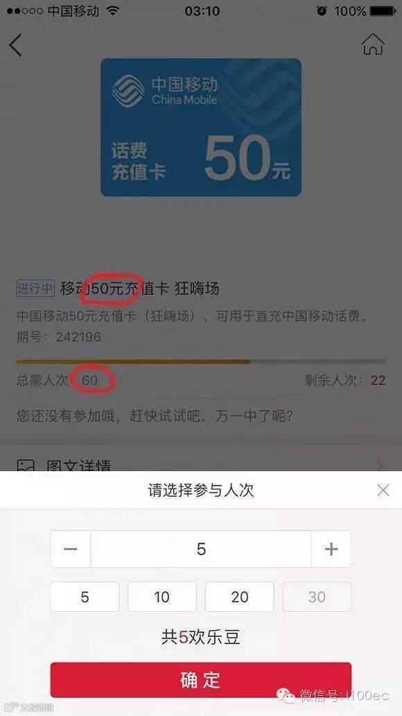 另外,一元购上的商品还有10%-20%不等的溢价。以50元的充值电话卡为例,通常需要凑满60个欢乐豆才能开奖,多出的10个欢乐豆由平台抽走。