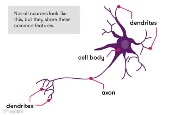 我们的大脑可以看做一个巨大无比的网络,它由约860亿个神经元构成。正如下图,每个神经元又会生出数个树突(dendrites),神经元之间通过树突联系在一起,就像我们搭建的电路一样。
