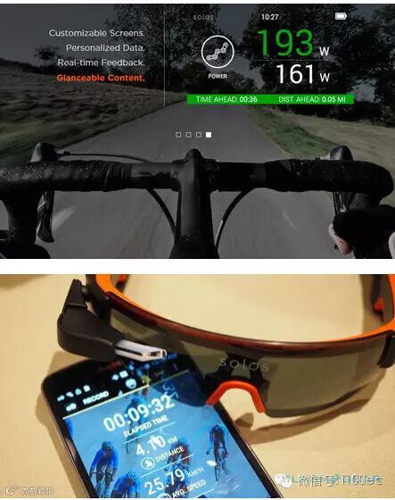 美国自行车队使用可穿戴的智能眼镜Solos进行训练,Solos可以说是Google眼镜的近亲,只不过强化了监测心率和体力的功能,并且将数据投射在内侧镜片之上,运动员可以看到实时的数据,Solos也可以给出骑手如何分配体力的建议。