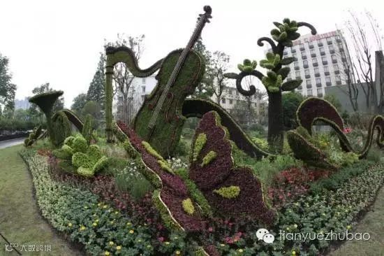 “G20峰会”主题立体花坛的绿雕主体钢构架,高约10米,长约25米,把杭州的山水文化中重要元素如山、水、花、桥、塔等融进去,勾出一幅绿水青山,大都市、新天堂的美好画卷,以此展示杭州风采,迎接G20峰会。