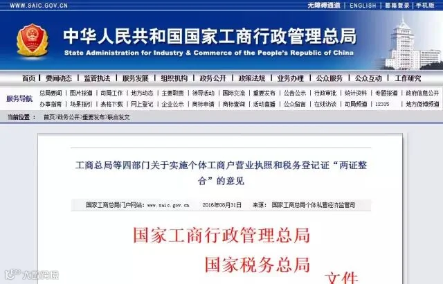 为进一步深化商事制度改革,加快推进“三证合一”登记制度改革向个体工商户延伸,经国务院同意,国家工商总局、国家税务总局、国家发展改革委、国务院法制办四部门日前联合发布《关于实施个体工商户营业执照和税务登记证“两证整合”的意见》(以下简称《意见》),提出将实施个体工商户营业执照和税务登记证“两证整合”。