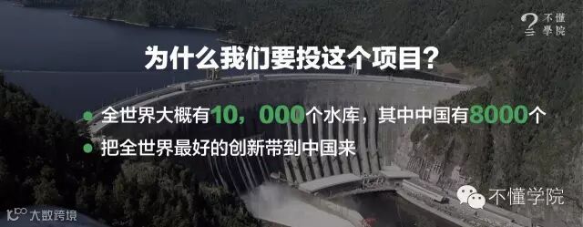 这个项目解决一个什么问题?这个机器人可以智能探测水库、桥梁的潜在风险。今天大家是如何检测水库风险的呢?通常你需要通过潜水员进行水下探测,一个小时候两千块澳币,两天三万澳币,约合15万元人民币。我们开发的这个小机器人,可以自由在在水下行走,通过它的图象处理技术,能在很浑浊的水环境下做探测,重构水下的大坝的三维模型,发现那些可能的故障在哪里。这个水下机器人的生产成本只有四千块钱,机器人也不会抱怨,更重要的是它可以精准地复制探测路径,这是人类做不到的。我们为什么要投这个项目?全世界80%的水库和水坝在中国,全世界有1万个水坝,8千多个就在中国,而这8千多个里,很多都是过去30多年建设的豆腐渣工程,所以中国很需要这个东西。