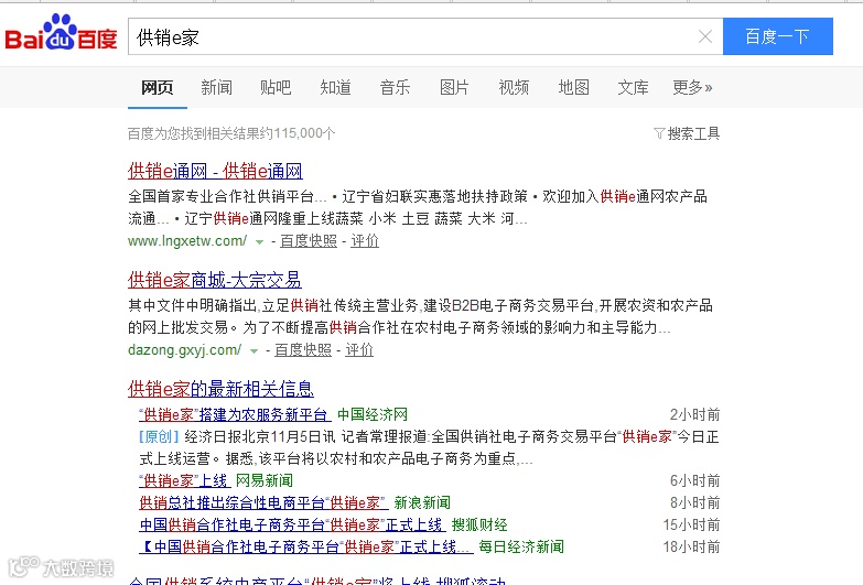 小编使用国人最常用的百度以“供销e家”进行搜索,结果是这样的。