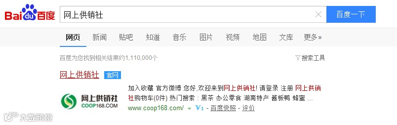 看来是小编打开方式不对,于是用“网上供销社”来搜索,结果是这样的,后面还带着蓝色“官网”,和淘宝、京东一样。貌似是找到组织。
