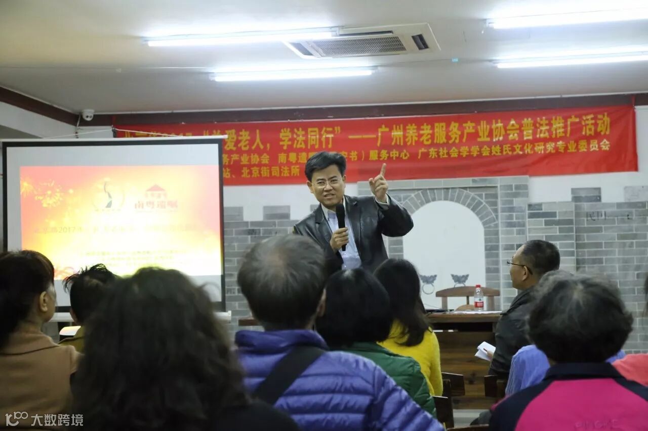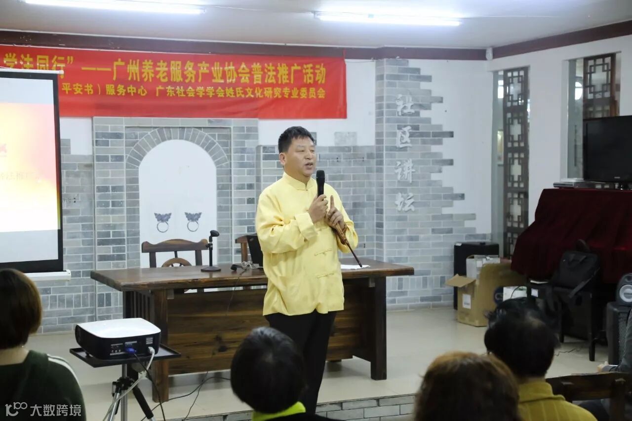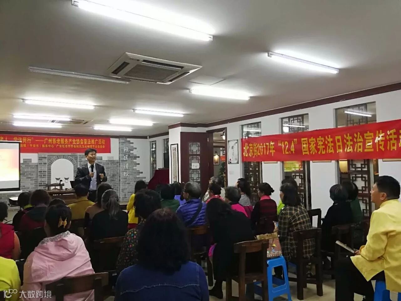 为深入贯彻落实党的十九大精神,增强全民法治观念,12月1日下午14:30时,由广州养老服务产业协会、南粤遗嘱(平安书)服务中心、广东社会学学会姓氏文化研究专业委员会主办,北京街文化站、北京街司法所协办,以“关爱老人,学法同行”为主题的普法推广活动在广州市北京街文化站举行。