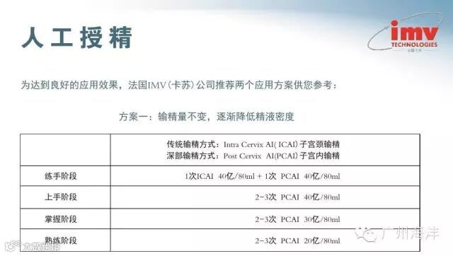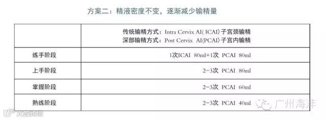 子宫内输精(Post Cervix Artificial Insemination ,PCAI),业内也称之为深部输精,是在将泡沫头型输精管插入到位并锁紧后,将一硬度适中的细管插入输精管,再将细管头部捻入到子宫颈与子宫的结合部位。细管尾部插接精液瓶或精液袋后,即可将精液用力挤入,精液沿细管并通过细管头部两侧的射精孔射入双侧子宫角,快速完成输精操作。法国IMV (卡苏)公司率先将子宫内输精技术商业化,并与1999年将子宫内输精管推向市场。