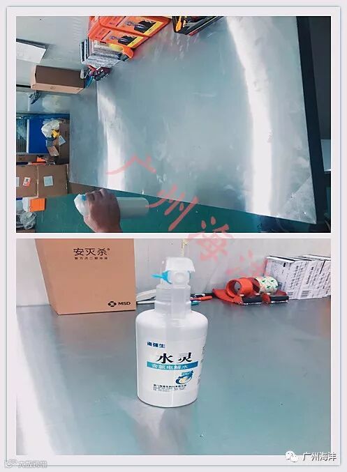 操作台及工具使用水灵(含氯电解水)喷雾消毒