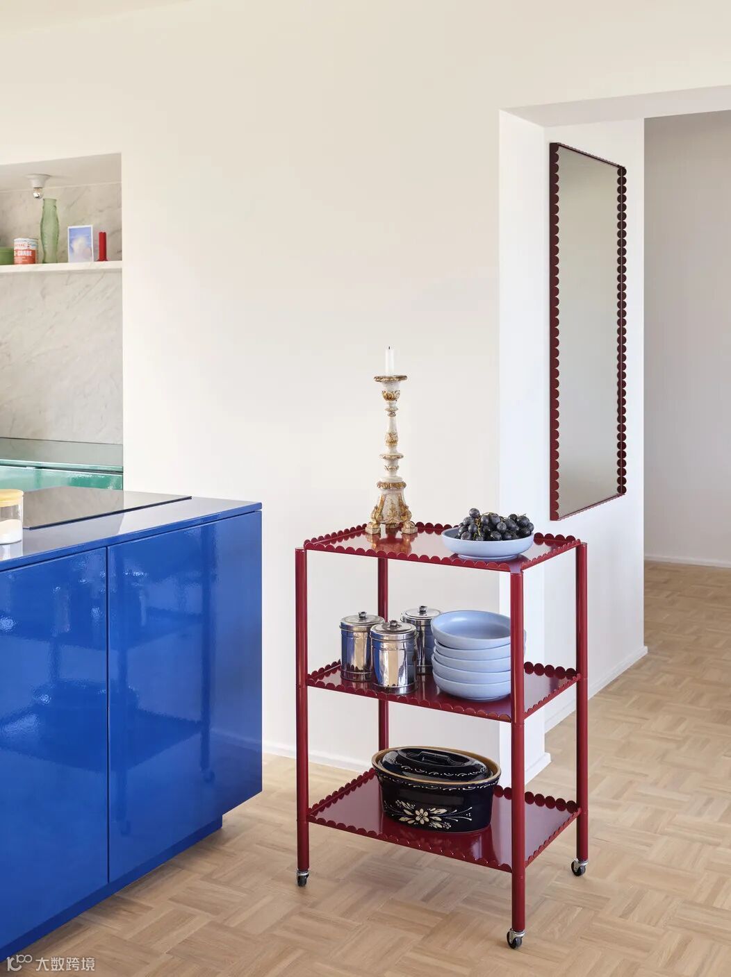 Arcs Trolley 由比利时设计师 Muller Van Severen 设计,延续波浪形的独特视觉的同时,展现优雅之意。小推车既可用作可移动的厨房储物架,也可作为座椅旁的边桌或床头柜,“走哪推哪”!