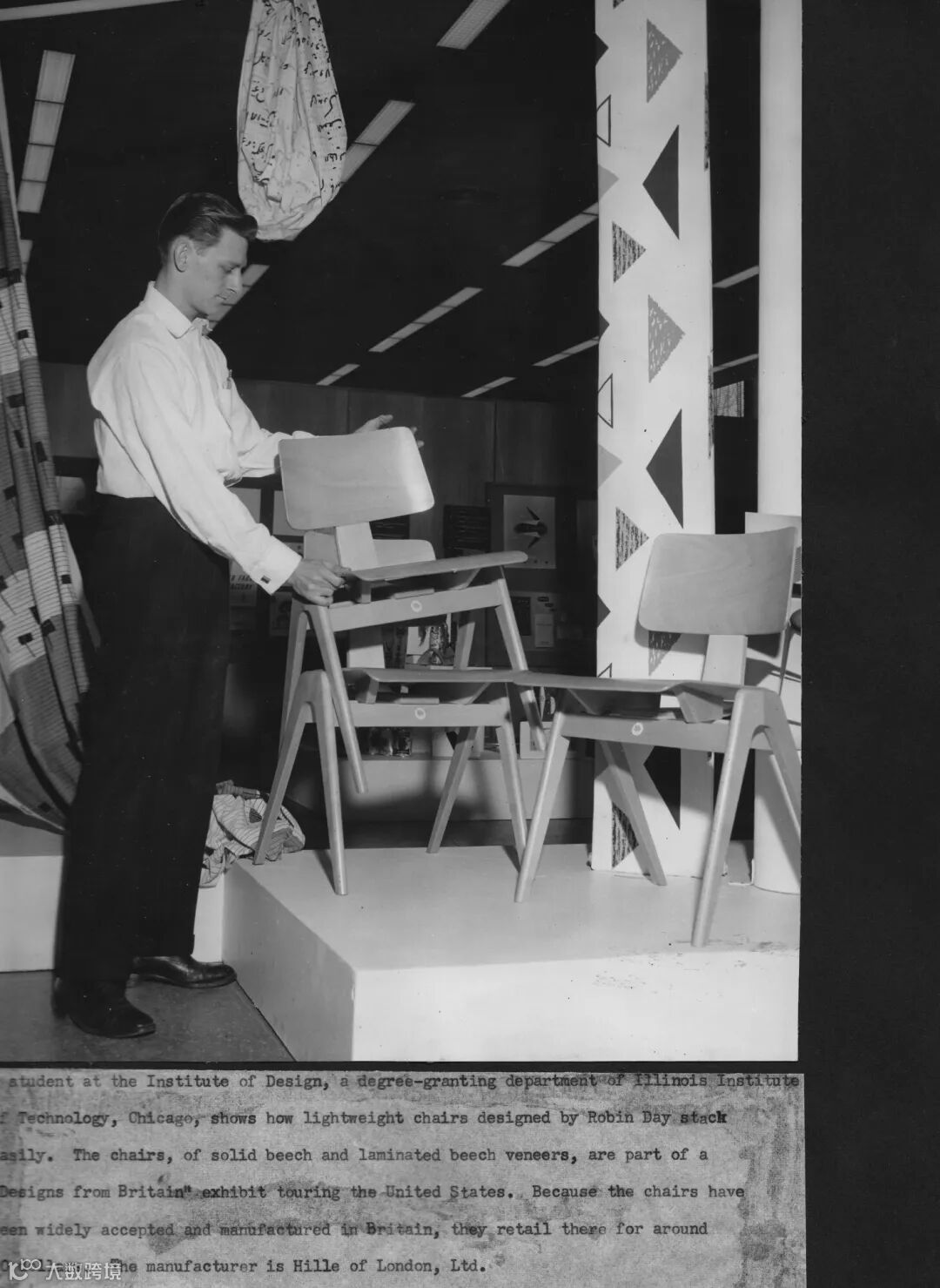1948年,Robin Day 与 Clive Latimer 携手赢得纽约现代艺术博物馆“低成本家具设计竞赛”储物类别一等奖,这成为他事业的重大转折点。此后,他与知名公司如 Hille 展开合作,为其设计了著名的 Daystak 系列家具,并获得诸多重要委托项目,如为伦敦皇家节日音乐厅设计全部家具,以及参与1951年英国节庆的项目设计。