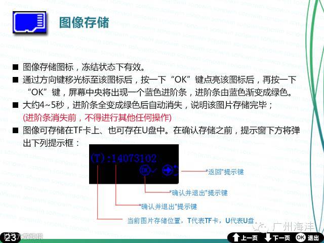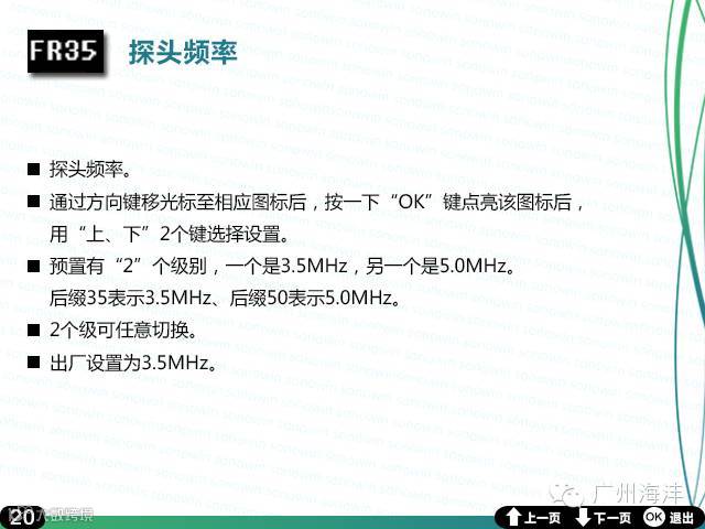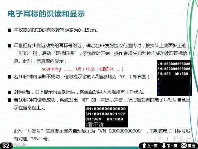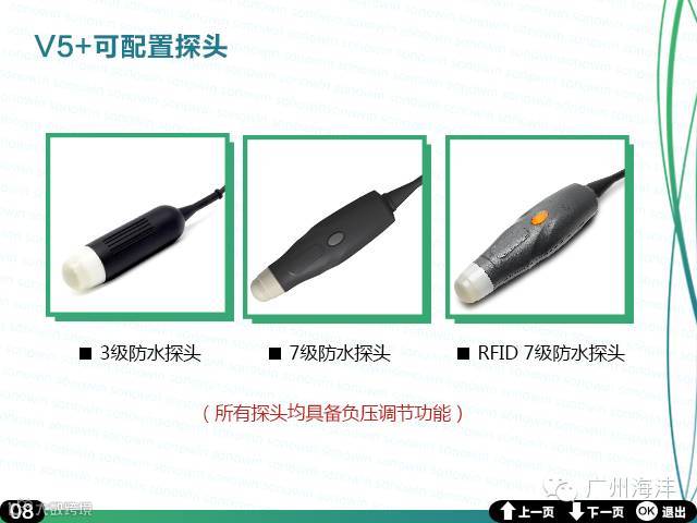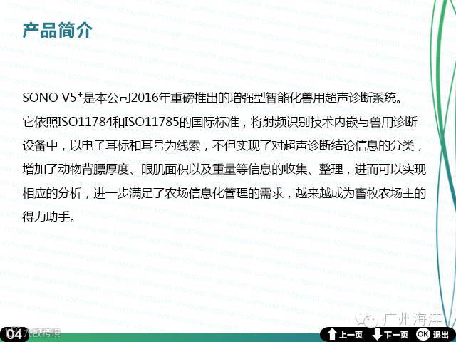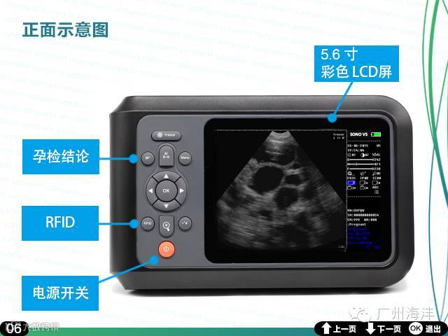 广州海沣全数字超声成像技术;B,B+B显示模式:5.6寸彩色高清LCD显示器;256级显示灰阶;机械伞扫;工作频率3.5/5.0MHz;7级防水专业防水探头;最大探测深度:250mm;每幅900k,BMP格式;电池:可充锂电池,可持续工作3小时;TF卡:4GB