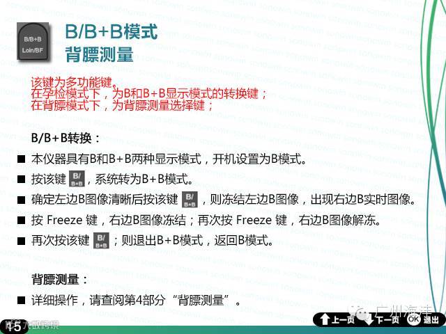 全数字超声成像技术;B,B+B显示模式:5.6寸彩色高清LCD显示器;256级显示灰阶;机械伞扫;工作频率3.5/5.0MHz;7级防水专业防水探头;最大探测深度:250mm;每幅900k,BMP格式;电池:可充锂电池,可持续工作3小时;TF卡:4GB