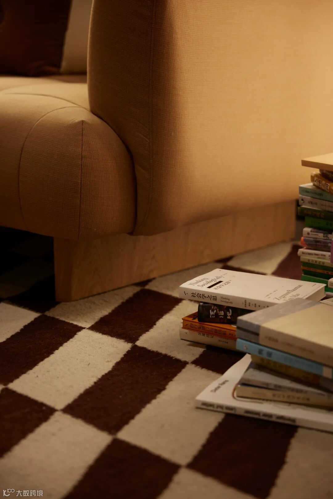 脚下的 Shift Kelim 羊毛地毯,低调的色彩和质感,承接着散落的书本与生活的片段。