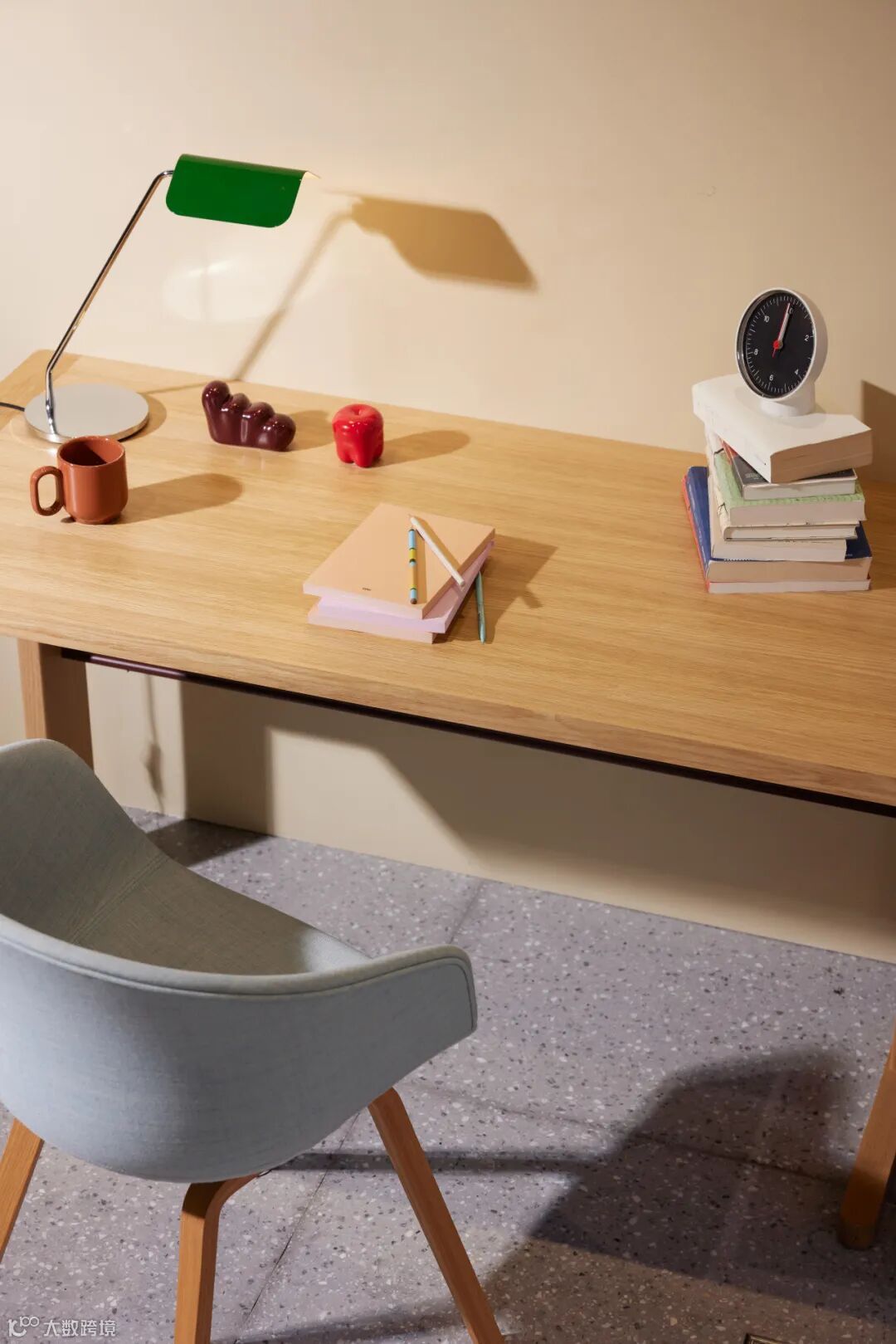 一张 HAY 的 Passerelle 书桌,以极简结构承载开放又不失秩序的桌面布局,正好容纳灵感的转圜余地。