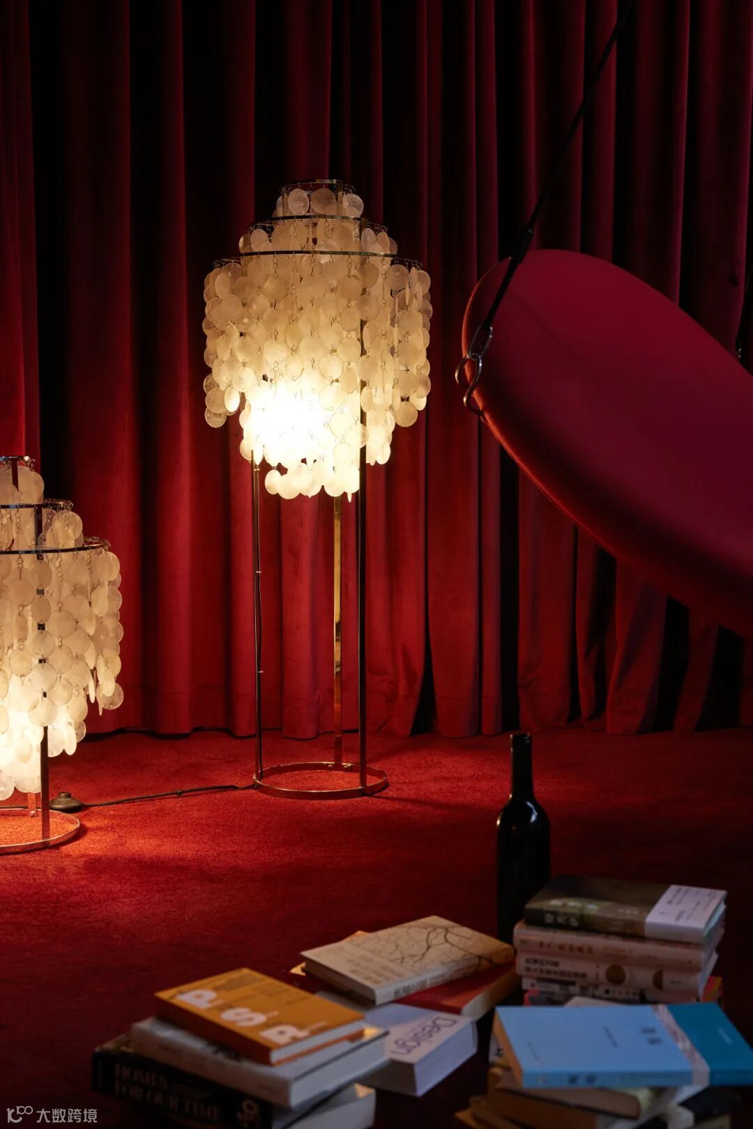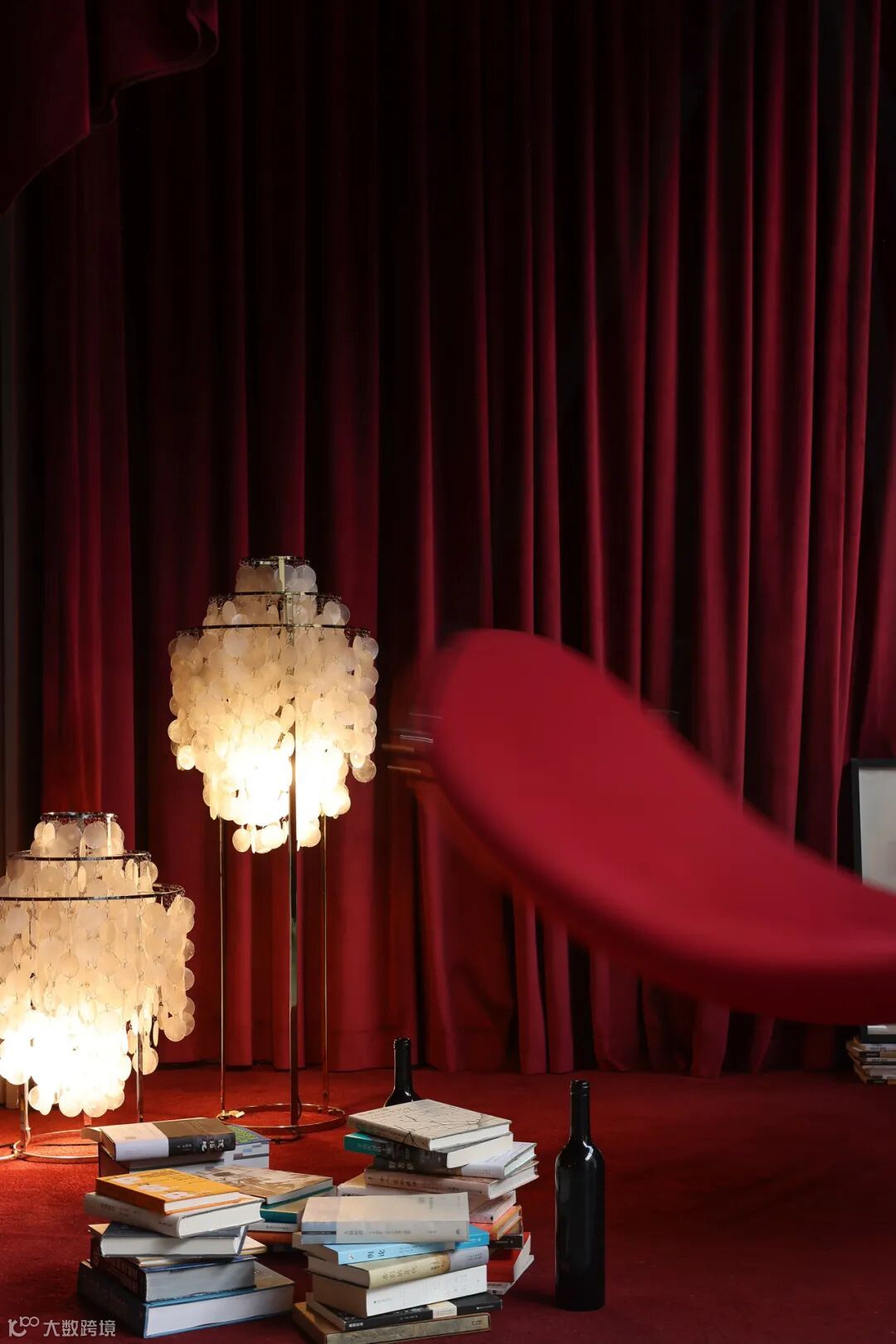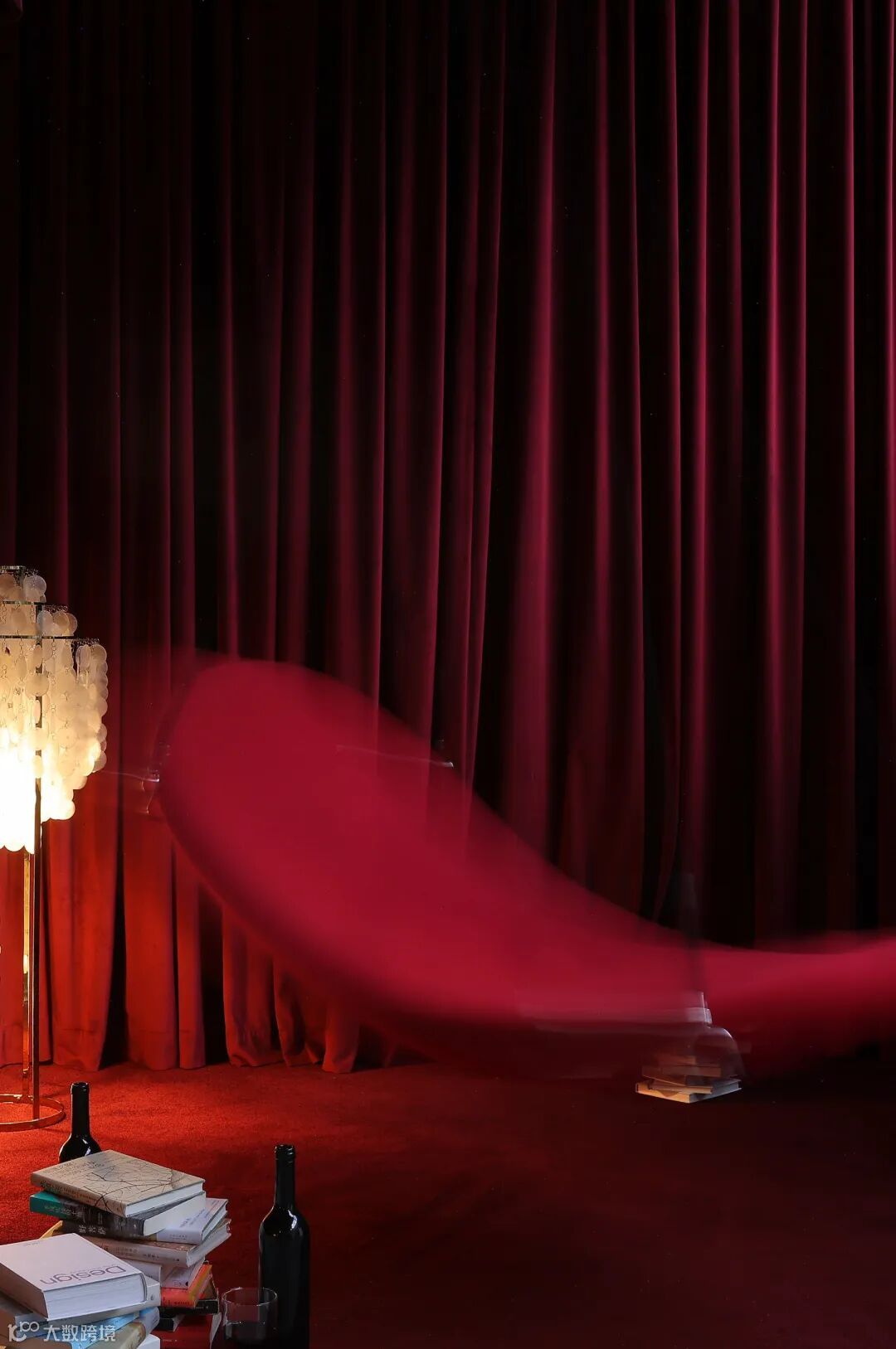 红色帷幔像一道柔软的结界,从视觉和心理层面将客厅角落悄然隔开。与常见低饱和度的"禅意阅读角"反其道而行——高饱和色反而能刺激多巴胺分泌,帮助疲惫的成年人更快切换状态。