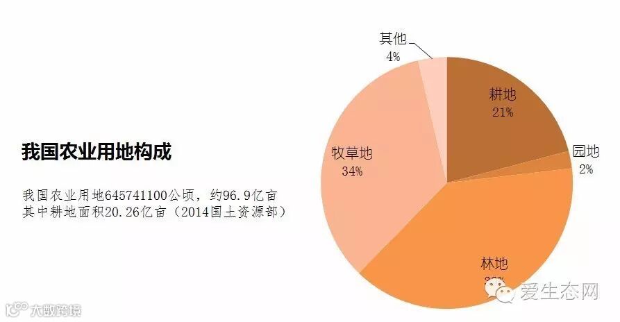 2014年国土资源部统计显示,我国农业用地96.8亿亩,其中耕地20.27亿亩、园地2.16亿亩、林地37.96亿亩、牧草地32.9亿亩。流转之后,这些土地的价值是多少呢?以20亿亩耕地来说,按目前每年¥500/亩的流转租金,每年就有1万亿的租金市场,如果按照目前30-50年的承包使用权,那就是30-50万亿的市场价值。如果再算上园地、林地、牧草地,也都是万亿以上的市场价值。这样的市场规模,再造一个阿里,完全可能。(注:阿里2015年销售额146亿美元,淘宝2015年交易额3万亿)