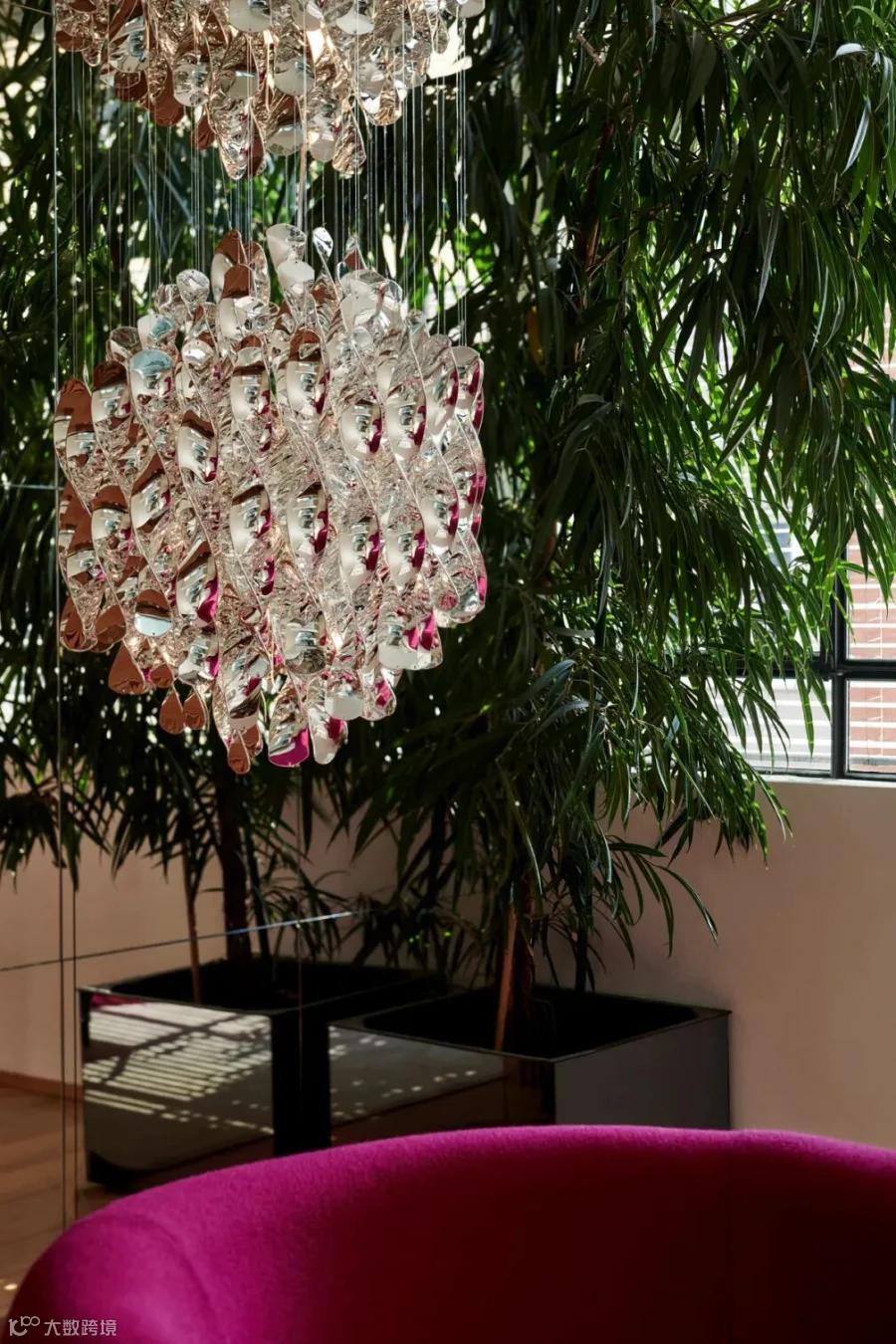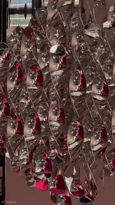 同时,抛光镀层互相折射映衬出独特的若隐若现的光亮,为空间增添一份神秘和格调,给人一种阳光照射瀑布的印象。