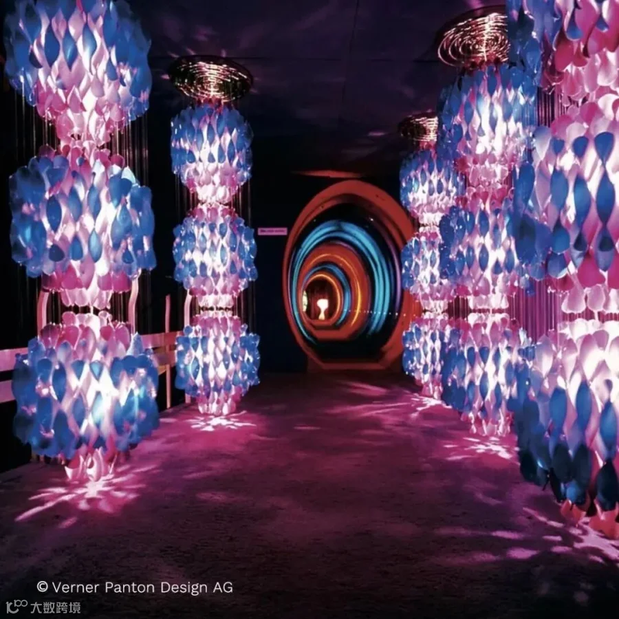 在 Panton 1970年「Visiona II」空间作品中,Spiral 更是以高光姿态一夺光彩。螺旋状的灯光雕塑被用作一种装饰方法,在整个空间中形成美丽的色彩漫射。