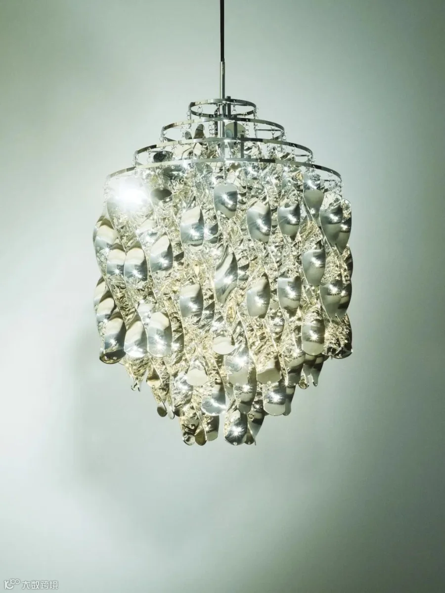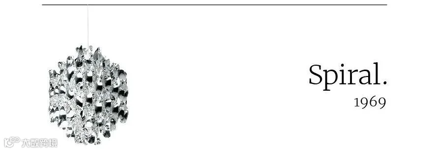 来自上世纪六七十年代的 Spiral 吊灯为今天的我们开辟了一个全新的视角,以绚烂的色彩和动人的光影遥想未来,打破了日常生活和装饰的传统方式。