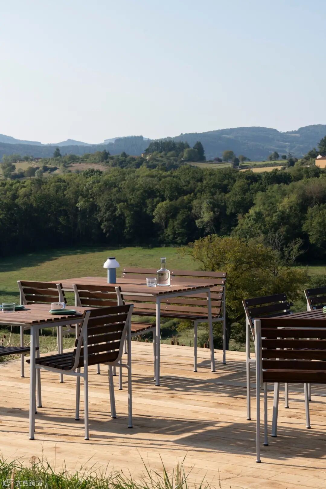 Traverse 系列包含餐桌椅、休闲桌椅和凳子,采用压铸铝框架和白蜡木条制成,白蜡木经过热处理,不仅增强了家具的耐用性,也赋予了它随时间愈发迷人的特质。