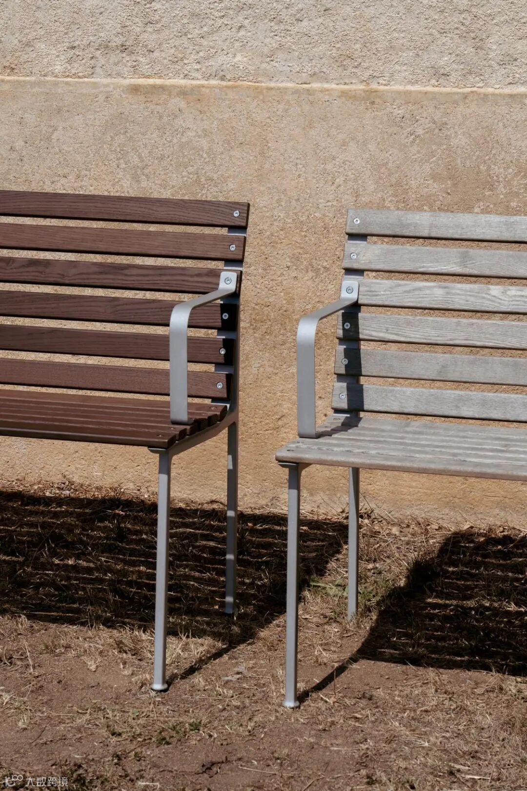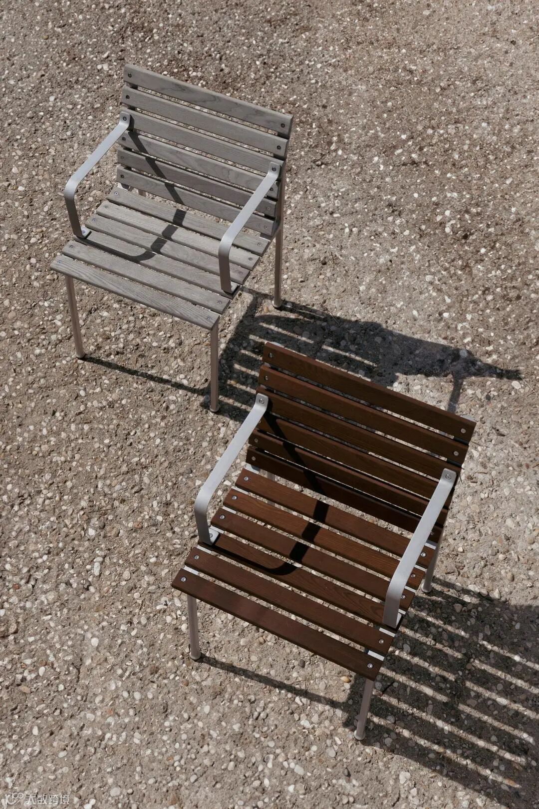 HAY 联合创始人 Rolf Hay 解释道:“柚木和其他热带雨林木材虽然适合户外使用,但并非最负责任的选择。Traverse 选用的白蜡木通常颜色较浅,但通过加热处理,它变成深棕色,同时提升其耐候性,使家具更能适应户外环境。”