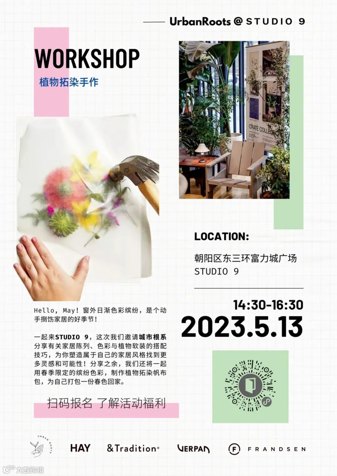 分享之余,我们还将一起用春季限定的缤纷色彩,制作植物拓染帆布包,为自己打包一份春色回家。