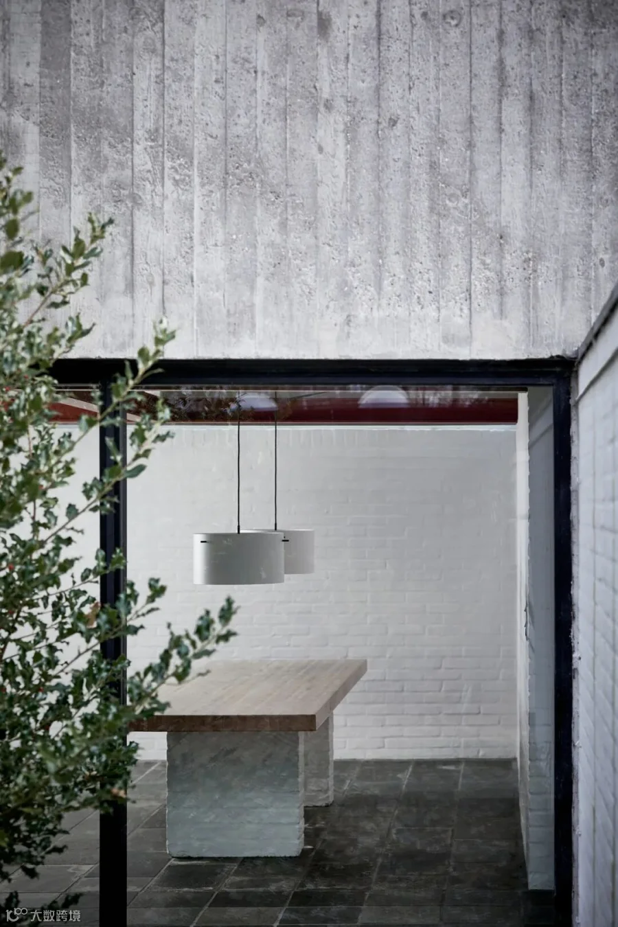 灯罩表面由钢材制成,哑光涂漆的纹理赋予其稳重的清水混凝土质感,却又不失低调的工业美感。