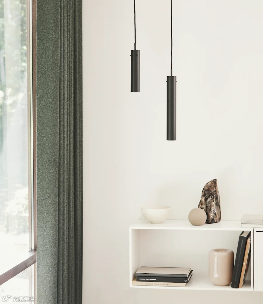 FM2014 吊灯同样以黑白双色展现经典氛围,提供 ø5.5/H24cm 和 ø5.5/H36cm 两种尺寸,可根据个人喜好,通过巧妙的层叠设计,在垂直方向上排列呈现出层次感,为空间营造出动态且立体的视觉体验。
