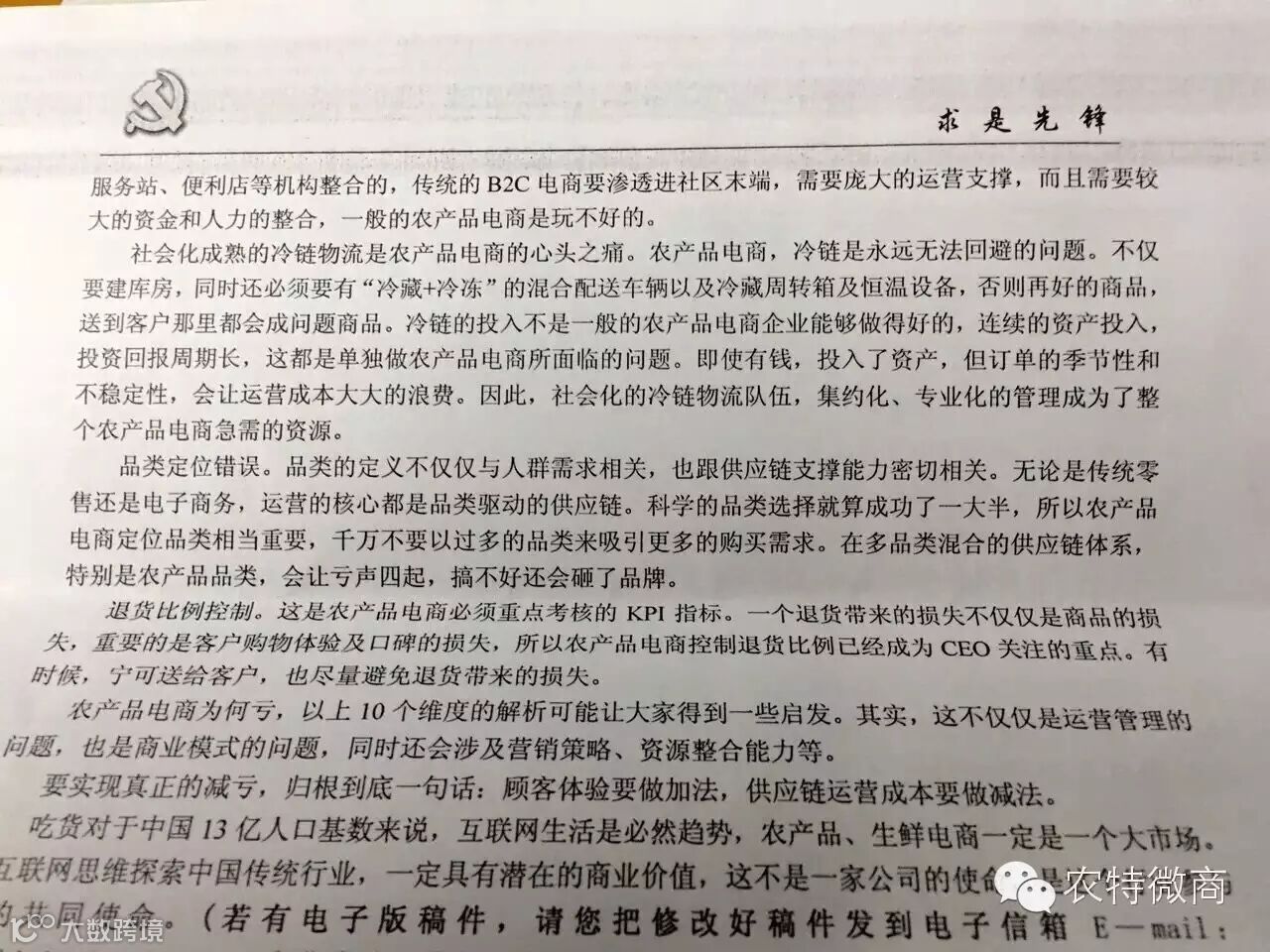 【导读】一篇纳入中国领导科学研究会《关于农产品电商运营的10大问题解读》文章,本文作者黄刚老师,鉴定了中国农产品电商发展,对实践有着现实的模范指导意义,并得到求是先锋刊载。