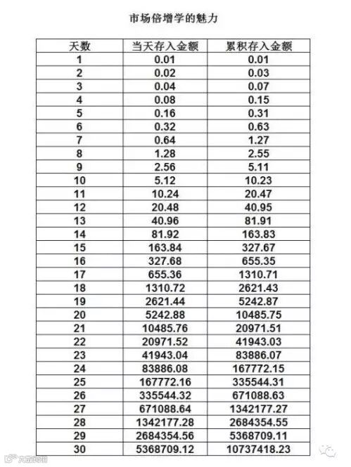 市场倍增利用几何级数原理,其范围大,涉及面之广,是其他任何营销方式所不能及的。假如一个公司有8个直销商,每个直销商发展8位直销商,到底8代的时候这家公司就有16777216名直销商。也就是说这个市场是一个无穷倍增的,当然,在现实当中没有这么快,有些环节不可能像理论上说得那么快,但是这种方法的威力是别的营销方式所望尘莫及的。