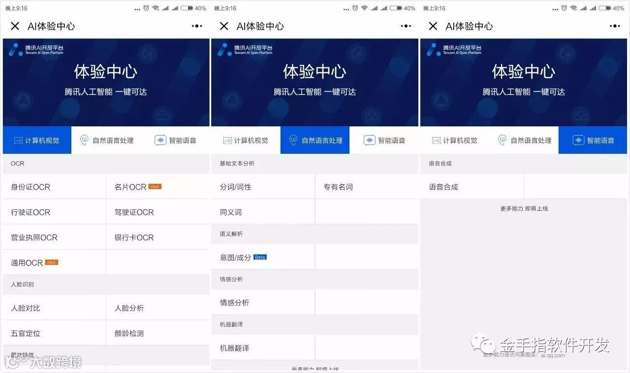 目前为止电商小程序和游戏小程序是微信小程序最有利的变现方式,而微信需要把自己的社交流量进行变现,现在腾讯又推除了一个名为「腾讯AI体验中心」的小程序,融合了腾讯优图的图片识别、语音识别、图片处理、内容识别等先进的AI技术,可以通过微信小程序实现。