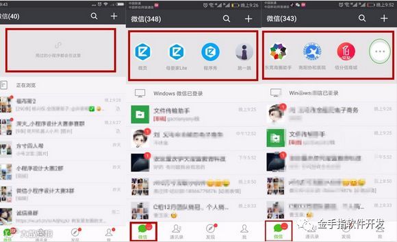 最开始小程序的入口在「发现」→「小程序」很多网友有高呼微信的小程序入口太深了,现在点开微信聊天界面,下滑就会有往期微信小程序浏览界面,右侧的「...」可以直接跳转到微信小程序的界面。这个入口简直方便的不能再方便了,登录微信直接跳转微信小程序的节奏有木有?小编大胆的猜想,以后历史浏览界面可以锁定某个小程序。