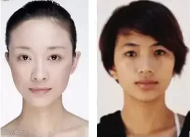 左图人物五官偏大,穿夸张、个性、大气的服装更显气质;右图人物五官小,穿清新,可爱的服装更显气质。