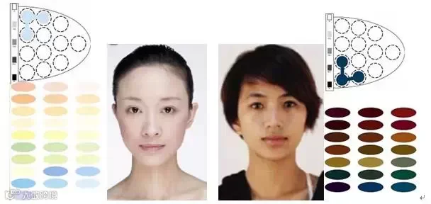 2、看五官:五官大,穿艳色;五官小,穿浊色。(如下图所示)